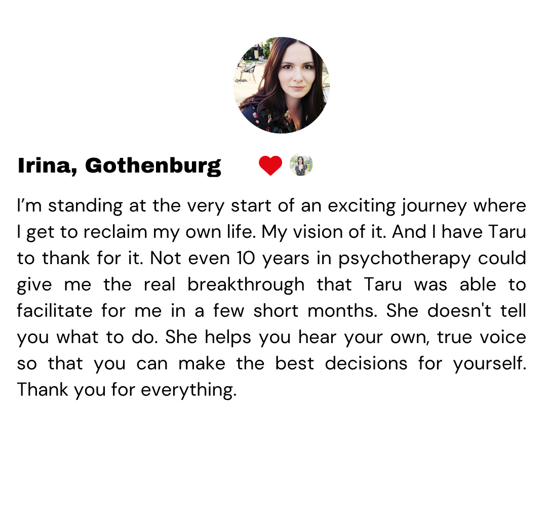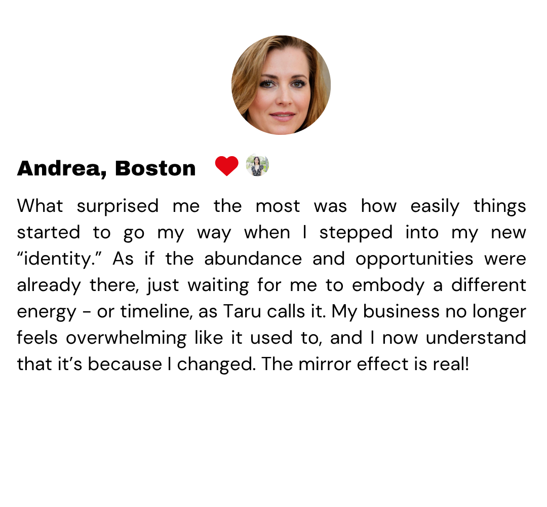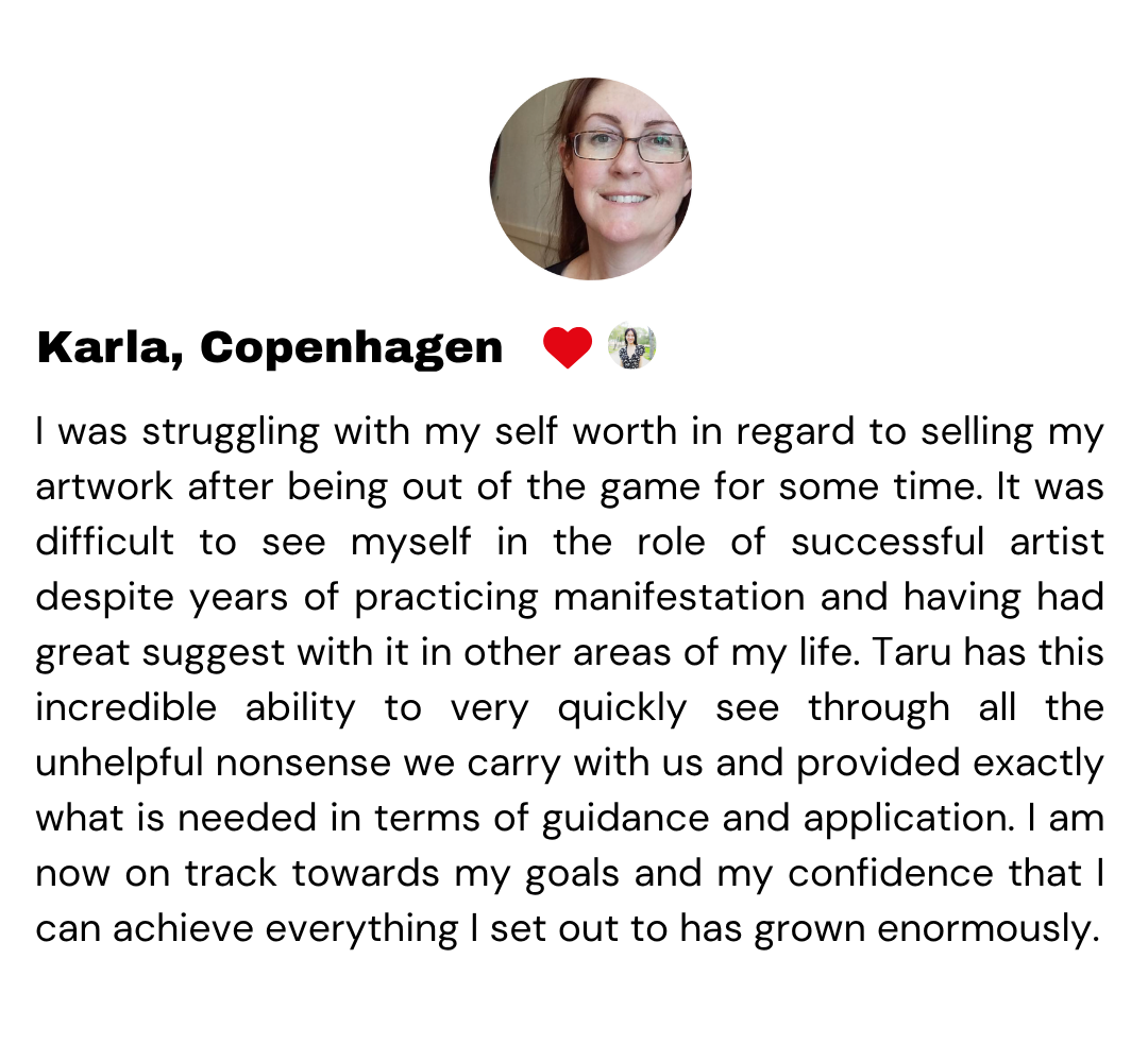 “Taru helped me dissolve patterns and narratives that no longer served me. Patterns that had been affecting my nervous system, boundaries, and sense of autonomy for longer than I realized. That inner shift translated into tangible results, including renewed confidence and momentum in my business. Taru gave me a much-needed permission slip to enjoy life more and return to creating from a soul-led place rather than a mechanical one. I could apply her insights and tools immediately to shift my perspective and my state of being. She helped me reconnect with my own authority and move forward in a way that feels true to who I am.”